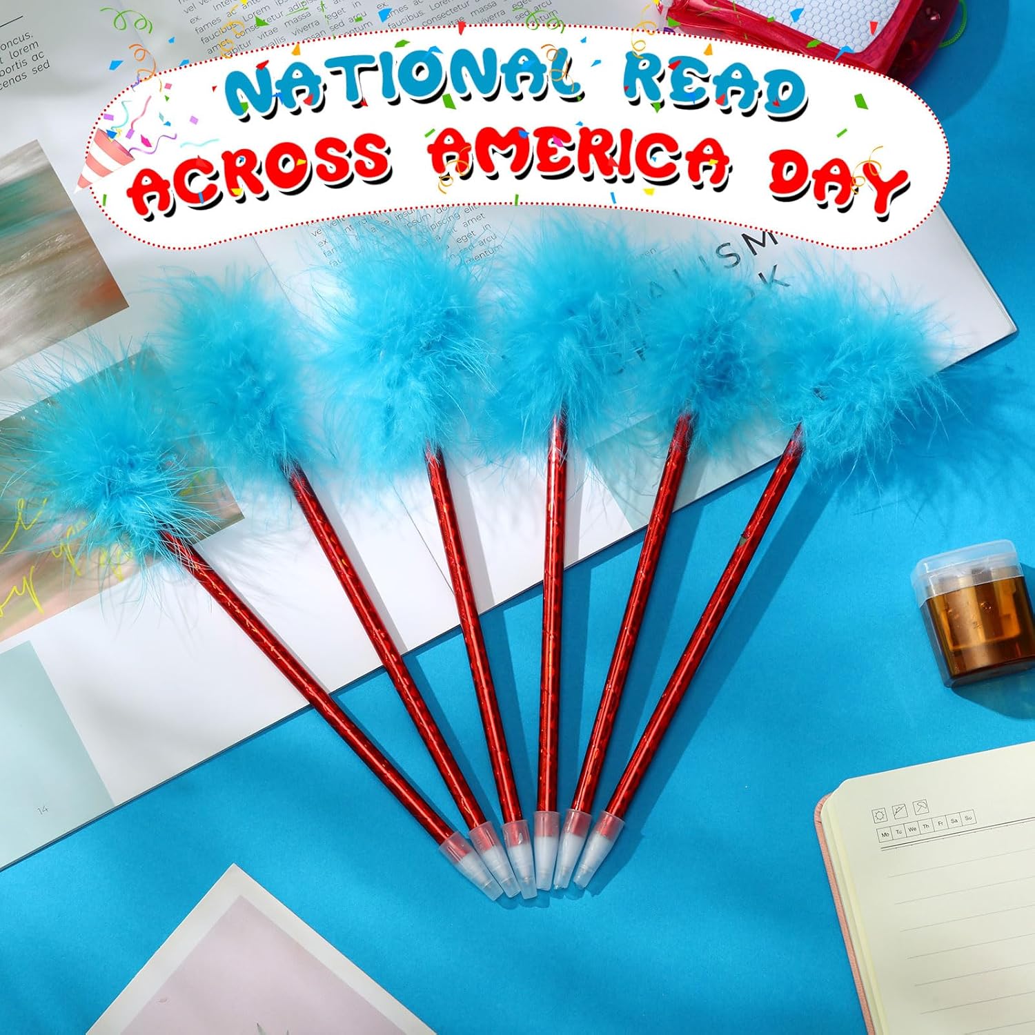 Dr. Seuss Inspired * Fuzzy blue and red pom pom pen * Read across America